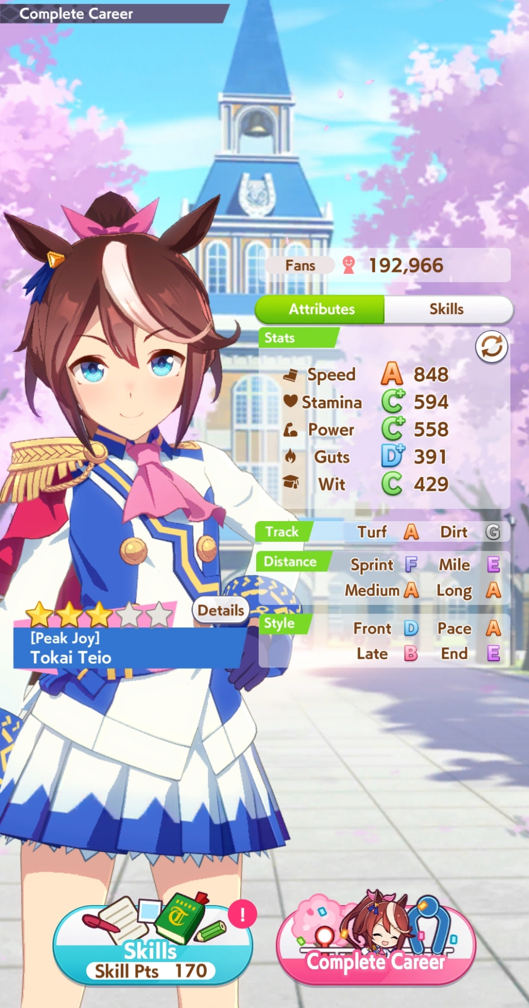Before I continue, I just want to say that of all the games I tried, Uma Musume definitely had the smoothest onboarding process. Yes, there are a myriad of currencies here too (Clovers, Cleats, Statues, Star Pieces, Monies, Support Points...) but the actual explanation of what they're for and how to play the game is much, much clearer. Career mode is fairly simple in most instances, though not everything is explained. Go ahead and see if you can find a consistent answer to what Power and Guts are for. I'll wait.